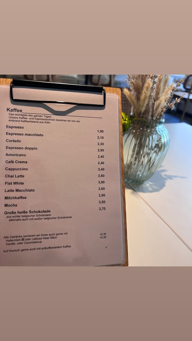 Hafermilch (vegan) oder Lakotose freier Milch +0,30 ; Vanille- oder Caramelsirup +0,30
